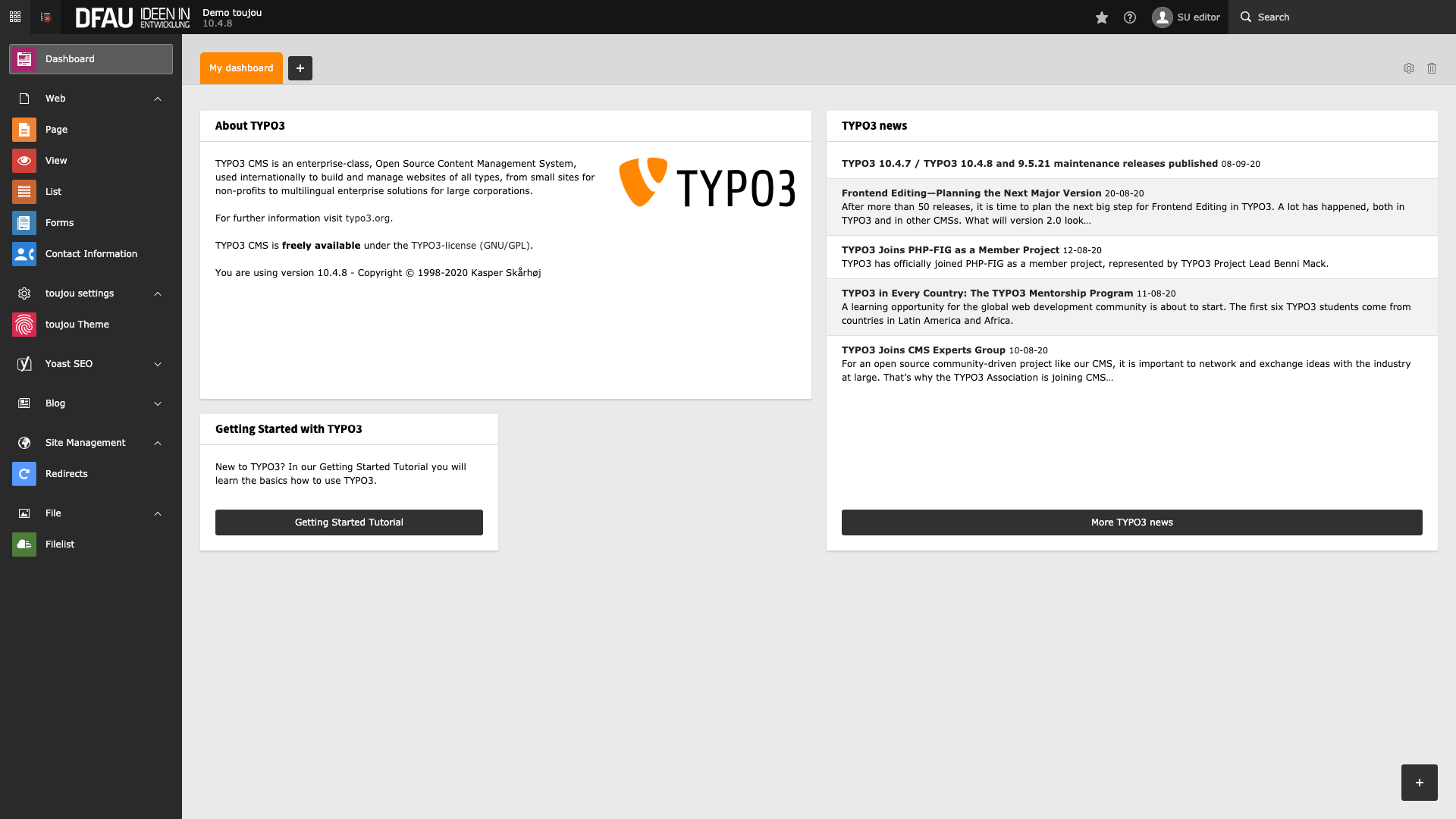 TYPO3 v10 LTS (Long Term Support) is now available for toujou. Since the official release in April 2020 we have been running a full compatibility-check to ensure a smooth transition. Now all toujou clients can enjoy the latest version of TYPO3.