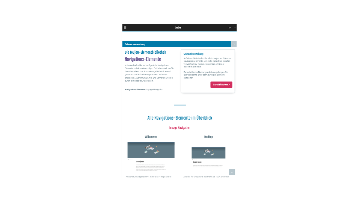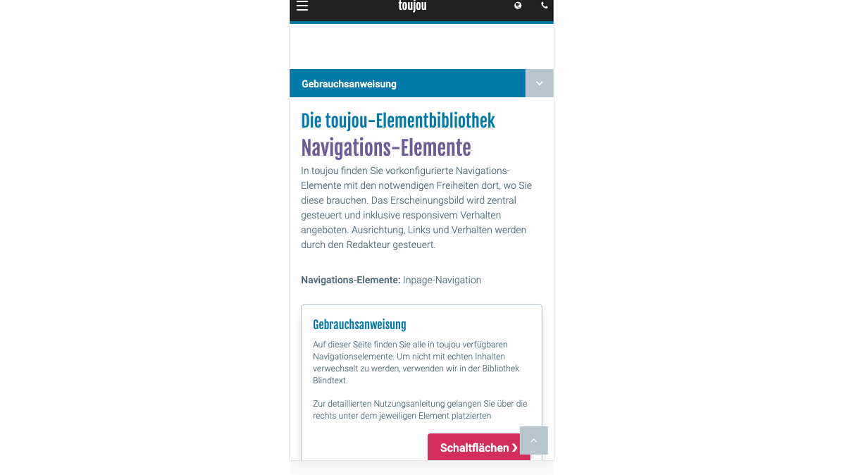 Responsive: Please note that in the mobile view to fit the size of the screen better, the inpage navigation is displayed as a dropdown menu. This does mean that all the links of the table of contents are not displayed at the same time. Click on the arrow to open the dropdown menu.
