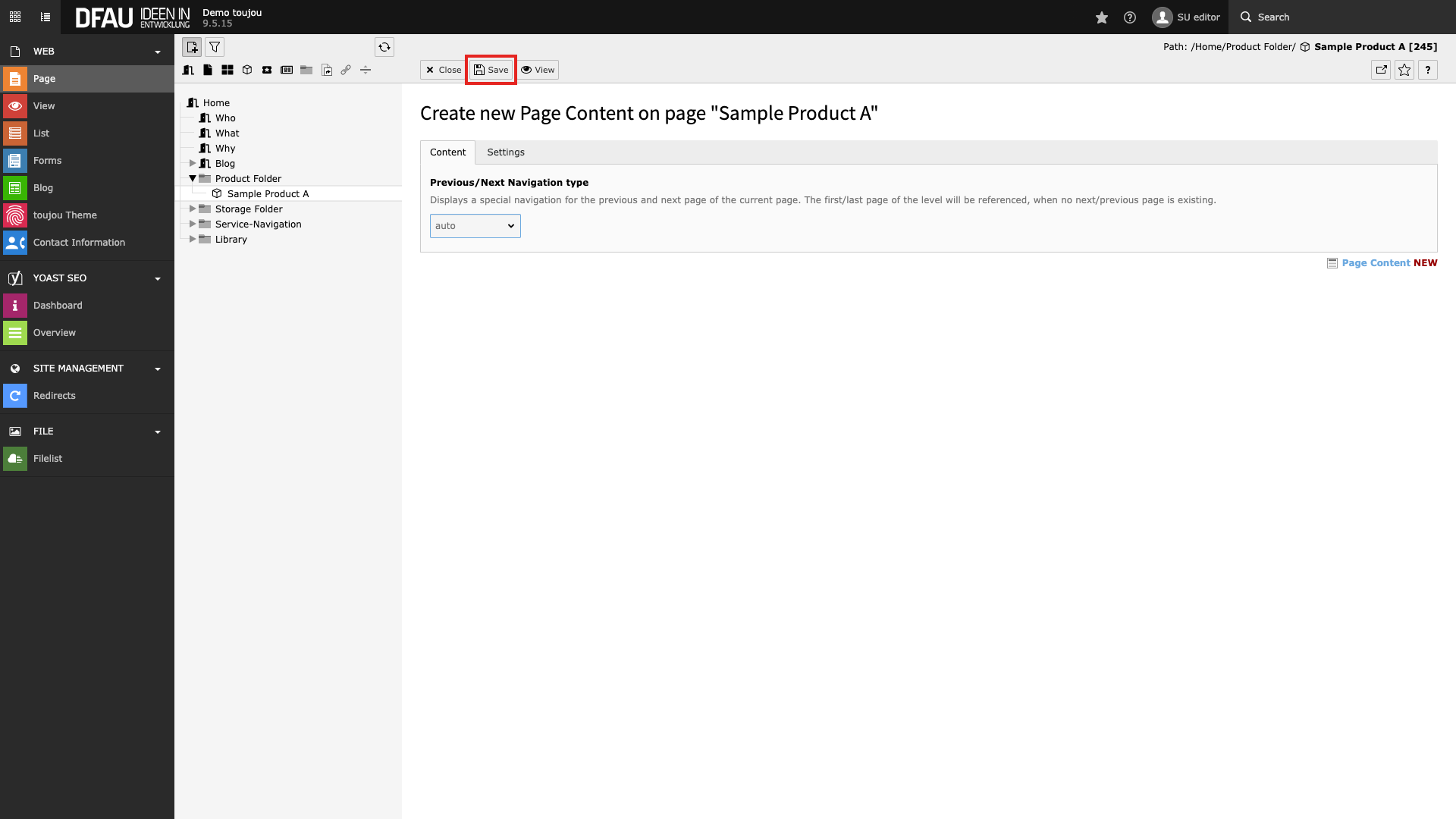 - The arrows are automatically linked to the previous or next page. The hierarchy is determined from the order of your subpages in the page tree from top to bottom.