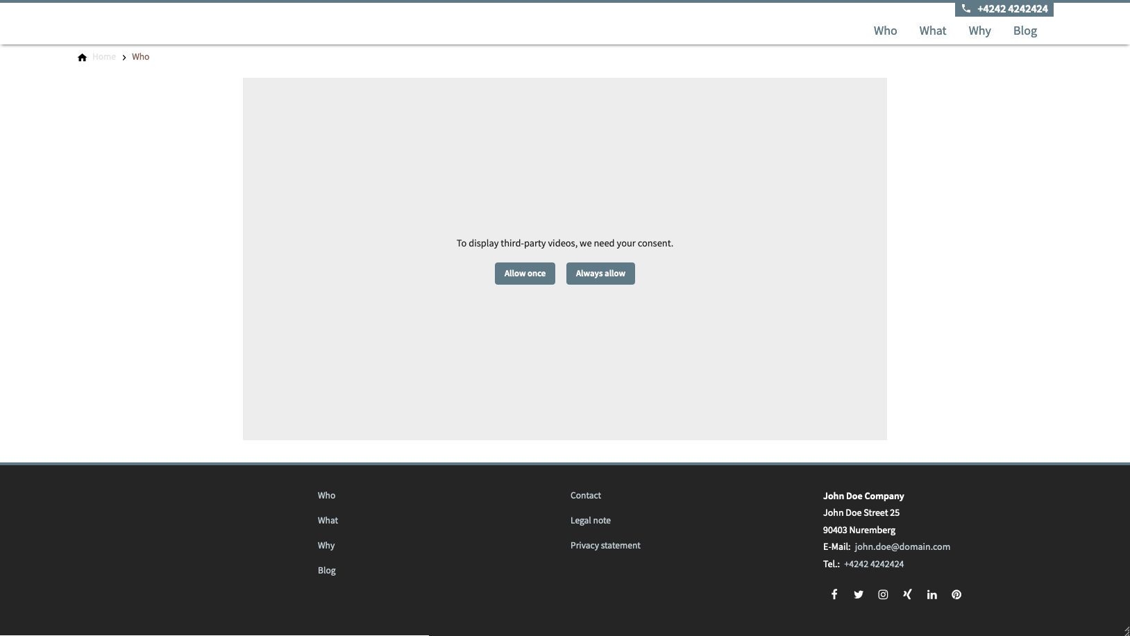 It makes sense to have a closer look at the different play options of videos with toujou and whether it is beneficial to use a thumbnail. With a thumbnail, your site will be more user friendly and provide an image as a placeholder until the video is started. When creating the thumbnail via Select & upload files the video is saved in the User_Upload folder.